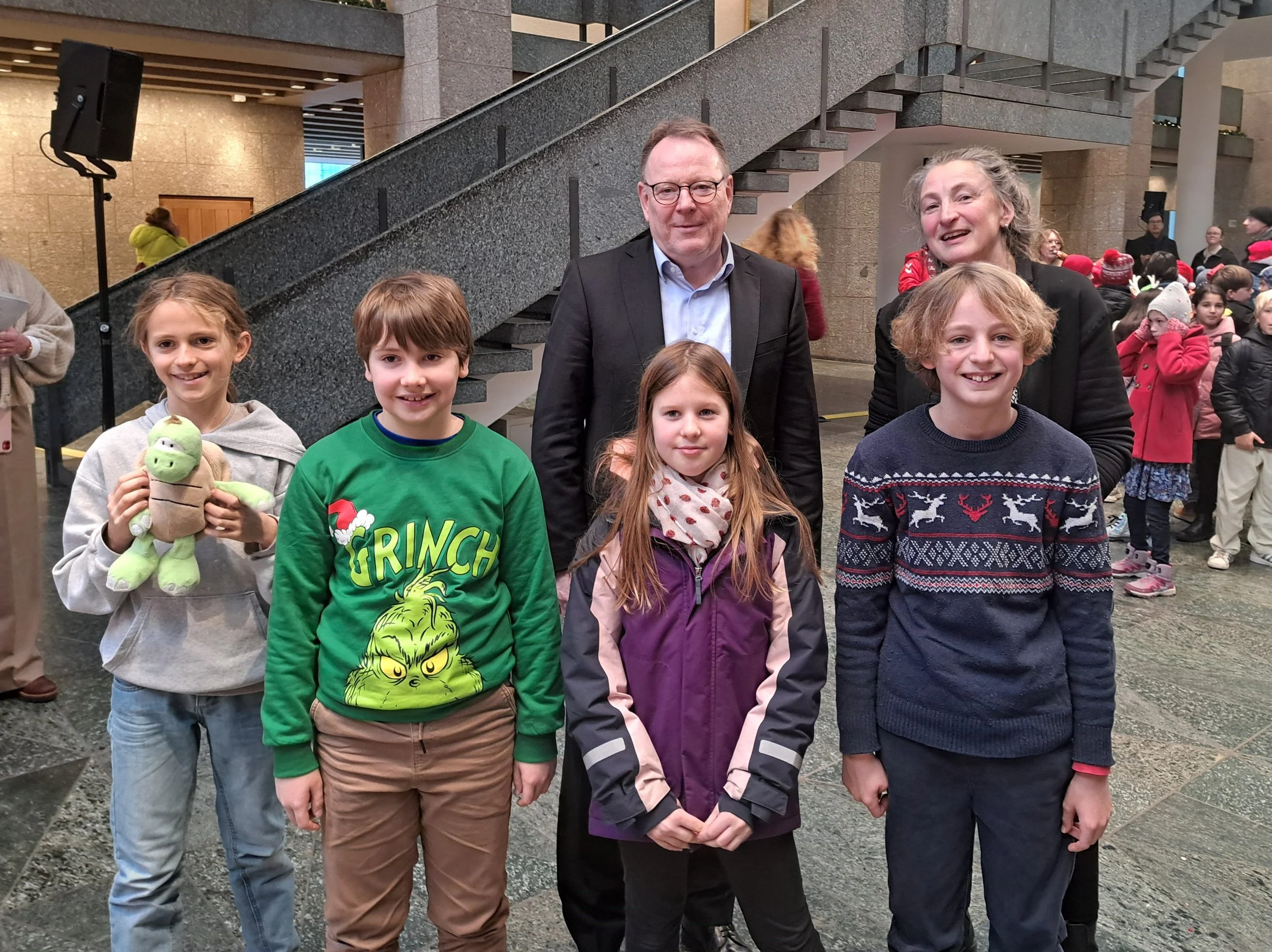 Ein besonderes Highlight: Mit von der Partie war auch der neue Oberbürgermeister Torsten Burmester. Bei dieser Gelegenheit hatte er sogar die Gelegenheit, den teilnehmenden Kindern die Hand zu schütteln — was für die Schülerinnen und Schüler unseres Gymnasiums sicher ein sehr persönlicher und bleibender Moment war.